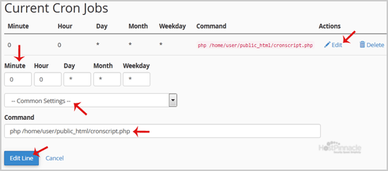 3. Scroll down to the end of page and under "Current Cron Jobs", locate your cronjob and then click on the "Edit" button.