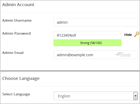 - Admin Username: Your new CMS Made Simple username (for security reason do not use the "Administrator" or the "Admin" username.)