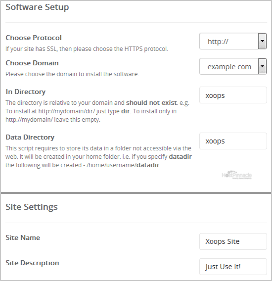 - Site Name: Enter the name of your website, such as "Xoops".