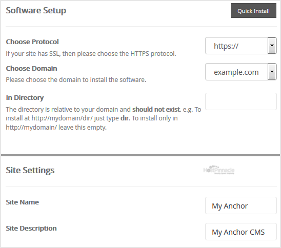 - Site Name: Enter the name of your website, such as "Anchor".